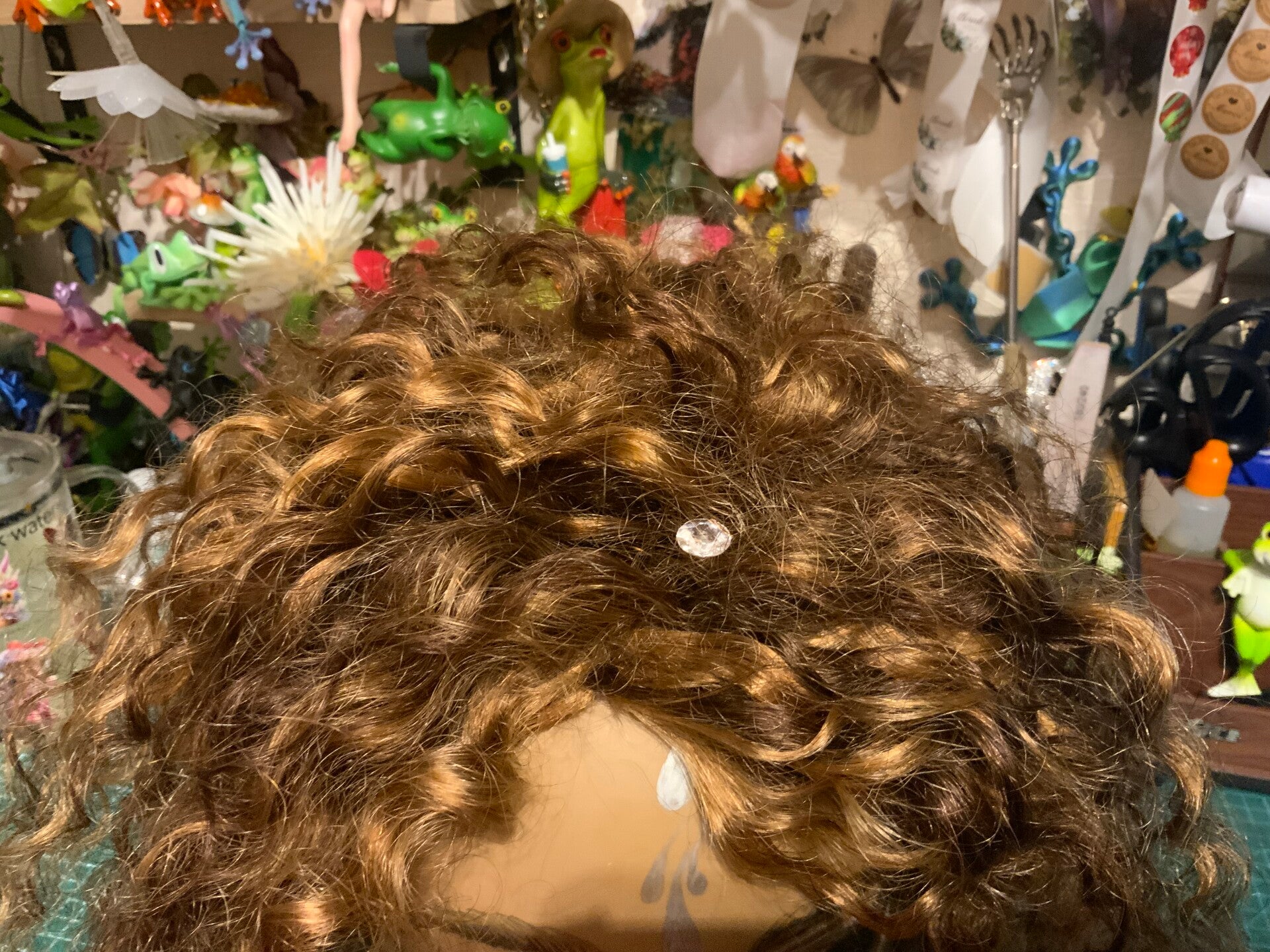 Volumateur 🧚‍♀️ Fée Carméa– Frisé naturel marron méché, 35/50 cm, cheveux humains Rémy, neuf