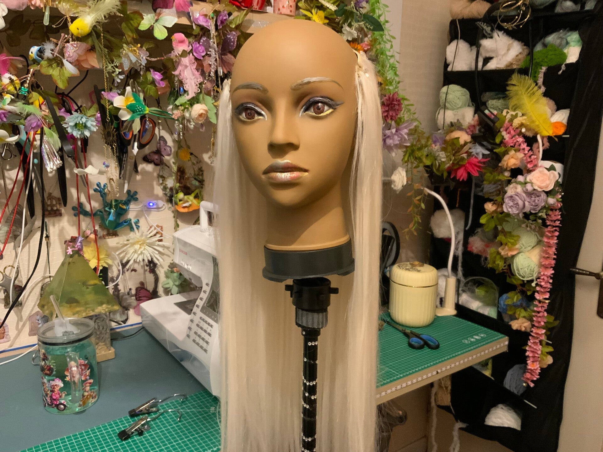 Cheveux lisses, soyeux, non brillants plastique.